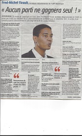 Pour avoir été informé de l’intervention de Fred-Michel TIRAULT dans « le rendez-vous politique du lundi » de France-Antilles Martinique n° 14335, Édition du 06 Octobre 2014, page 8.