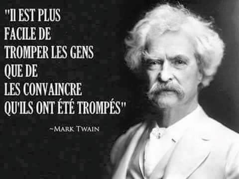 Et, n’est-il pas « plus facile de tromper les gens que de les convaincre qu’ils ont été trompés » à prévenu Marc TWAIN depuis les bords du Grand MISSISSIPPI.