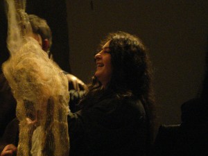 d’araignées comme des métaphores de la vie et du processus créatif. Les araignées utilisent ce qu’elles trouvent sur leur chemin pour fonctionner.  Nos vies et nos énergies étant tissées étroitement dans les nombreux réseaux de la vie, sont vraiment interdépendantes ». Pour concrétiser le Web, les matériaux utilisés sont des fils d’argent, des tissus conducteurs, des senseurs et un PCB sur mesure, des lecteurs MP3 et des haut-parleurs.