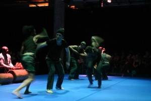 Dessinant de multiples parcours et pistes et traçant des diagonales brisées, la musique et la danse de Montréal by night appuient une œuvre, mettent en relief des situations scandaleuses, dénoncent les abus corporatifs et les viols devenus légaux, d’un commun vouloir de vie commune où les individualités sont clairement exprimées tout autant que leur solidarité. Le message est enraciné dans le quotidien des citoyennes et des citoyens, la révolte sourde face au cynisme et à une dictature administrative qui a corrompu les âmes et les corps. Les gestes de la danse disent la collusion qui blesse les corps sociaux ainsi que la démission qui régit les âmes, figures de l’éthique violée, le chaos vécu ouvre la porte aux vagues d’espoir dans une rédemption qui surgit avec la musique instrumentale. Aux absences de lumière du début de la pièce, suivent des éclats rafraîchissants, magie du DJ Elli Miller Maboungou et des accords séquentiels sous la houlette de Marc Keyevuh, sublime vertige jailli du violoncelle de Jean-Christophe Lizotte.
