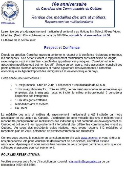 10ème anniversaire du Carrefour des Communautés du Québec