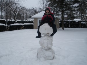 La dernière tempête de neige qui s’est abattue sur notre région a laissé assez de précipitation pour que les enfants puissent s’adonner à ce qu’ils aiment le plus faire en cette période glaciale de l’année : un bonhomme de neige.