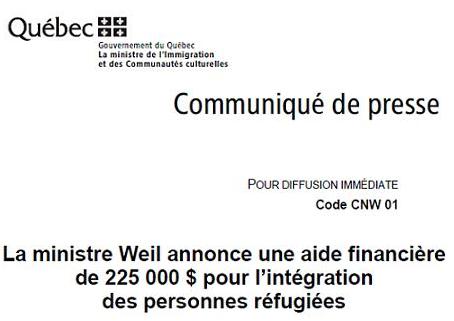 ministre de l’Immigration et des Communautés culturelles, Mme Kathleen Weil. « Au cours |