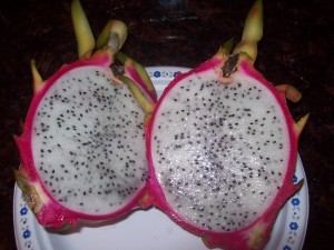 Le Fruit du Dragon (Thanh Long en vietnamien) appelé ainsi en raison des entrelacs de cette plante grimpante qui rappellent la forme sinueuse d’un corps de dragon, ou encore pitaya ou pitahaya, de l’amérindien taïno ou «fruit écailleux» est un fruit mesurant une dizaine de centimètres et pesant environ 350 grammes.
