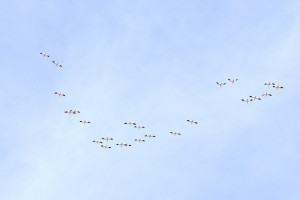 Les oies… les yeux vers le ciel je les vis. C’est pas vrai! Bon Dieu que vous êtes belles! Bienvenue! Bon retour! Heureux de vous revoir! Comme tartarin à Tarascon, J’avais envie de jeter mon couvre-chef vers ces plumes argentées et vibrantes.