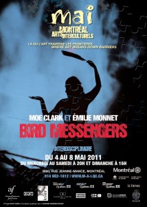 Le MAI (Montréal arts interculturels) présente «Bird Messengers», un spectacle interdisciplinaire créé et interprété par Émilie Monnet et Moe Clark.  Une performance saisissante où théâtre, projections et musique nous transportent d’un univers ancestral porteur de sens vers une mythologie vivante et réactualisée, moyens qui placent l’œuvre au point d’équilibre dynamique entre tradition et ouverture.