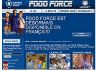 Présenté par le Programme Alimentaire Mondial des Nations Unies (PAM), Food Force a été développé pour aider les enfants de différents niveaux scolaires à se familiariser avec l’idée ou le concept de lutte contre la faim dans le monde. On explique ce qu’est la faim, pourquoi elle existe et comment on peut y mettre un terme. Le jeu est constitué de 6 missions où l’un des personnages de Food Force présente la situation et le défi à relever. Chaque mission représente l’une des étapes clés du processus de l’aide alimentaire, de l’intervention d’urgence jusqu’aux projets à long terme visant à aider les populations les plus pauvres à se développer. |
