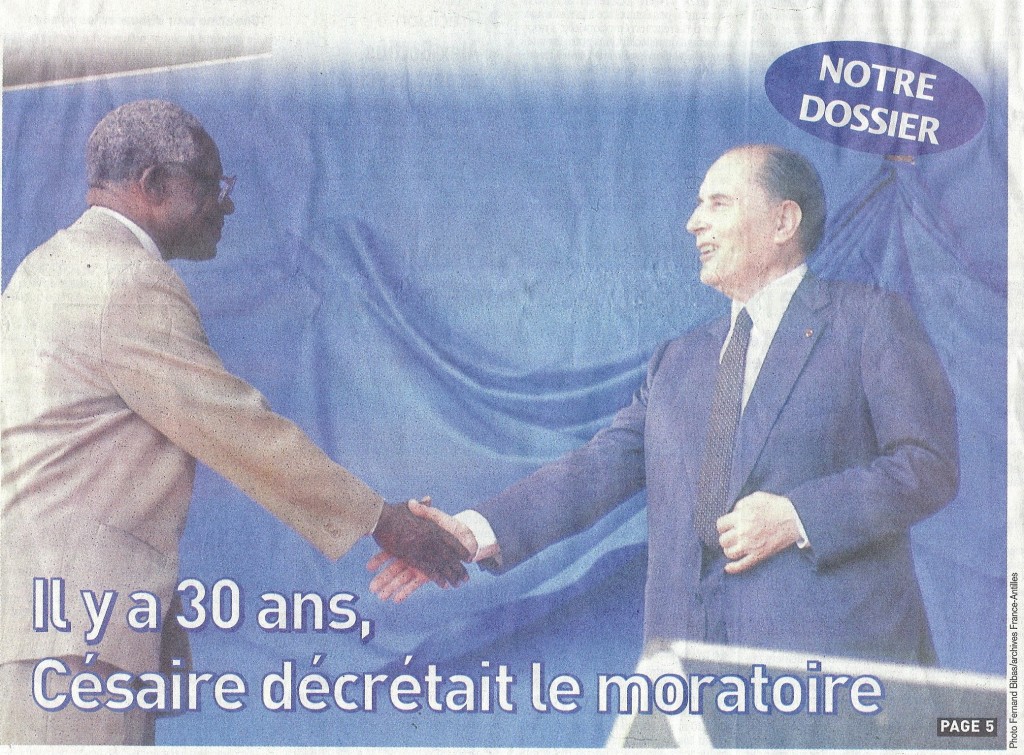 Il y a 30 ans, Césaire décrétait le Moratoire, Mitterrand lui serrant la main :