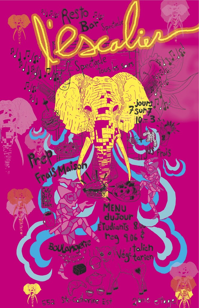 L’Escalier vous propose une cuisine végétarienne, un menu du jour et des désserts végétaliens, inspirée par les gastronomies des quatres coins du monde. Des plats savoureux créés avec des produits frais, préparés sur place souvent locaux et toujours équitables. Tous les soirs, L’Escalier offre une programmation musicale et culturelle unique en son genre. Notre espace est offert gratuitement pour des activités tel que les conférences, discussions, débats et projections en plus de notre programmation régulière de spectacles.
