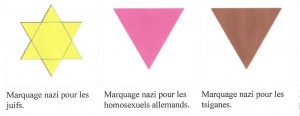 Au lieu de la « Lettre écarlate » à laquelle était tenue la femme adultère, il condamna les minorités qu’il exécrait au port d’une Étoile Jaune pour les Juifs, d’un Triangle Rose pour les Homosexuels, d’un Triangle Marron pour les Tziganes…