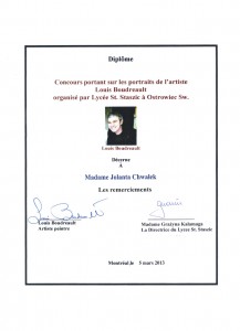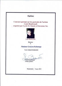 Le 5 mars 2013 a eu lieu, dans la Galerie de Bureau des Expositions Artistiques (BWA ), à Ostrowiec Sw. en Pologne la distribution des prix du concours plastique très particulier portant sur les portraits du peintre Louis Boudreault ou leur interprétation.