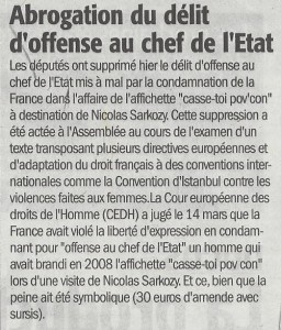 Désormais, nul délit d’offense au Chef de l’Ėtat, qu’on lui intime « Casse toi pov’con ».