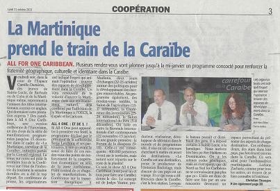 –      Fig.3 : France-Antilles Martinique n° 14047 : « La Martinique prend le train de la Caraïbe ».