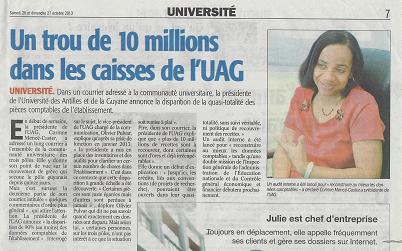 –      Fig. 4 : France-Antilles Martinique n° 14052 : « Un Trou de 10 Millions d’Euros dans les Caisses de l’U.A.G. »